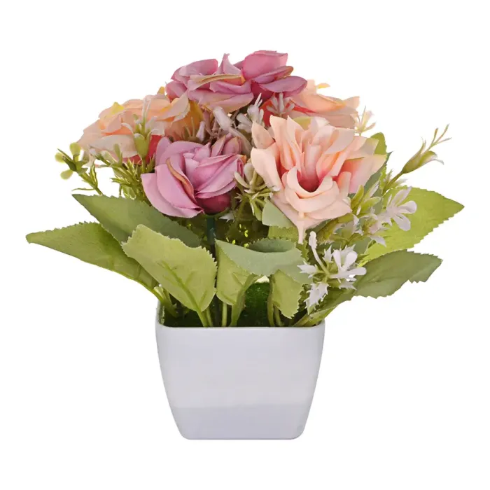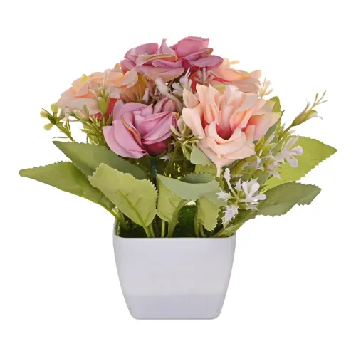 Искусственное растение Бонсай Миланская роза в горшке, цвет розовый TCV034-01
