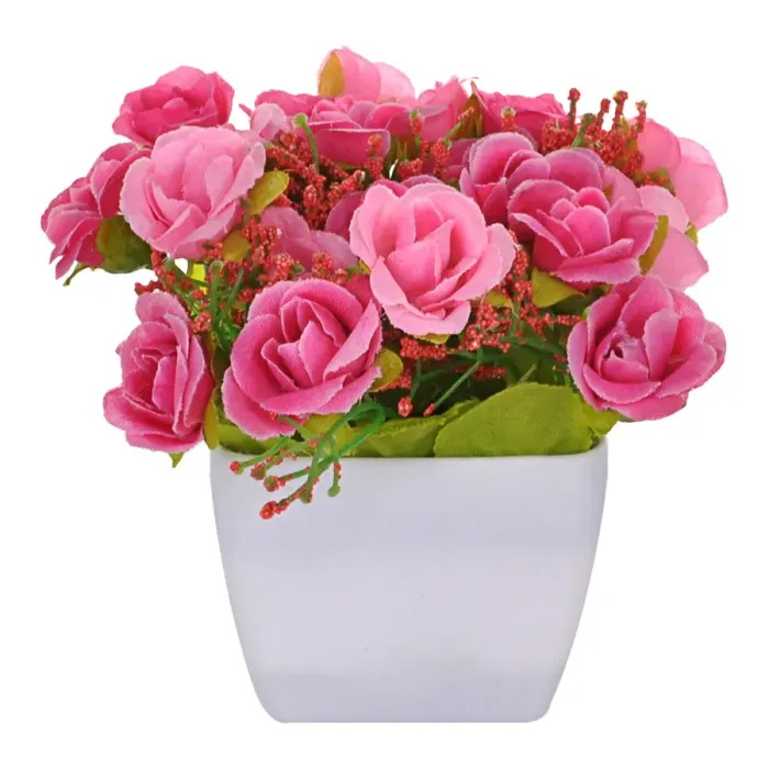 Искусственное растение бонсай с розами в горшке для интерьерного декора.
