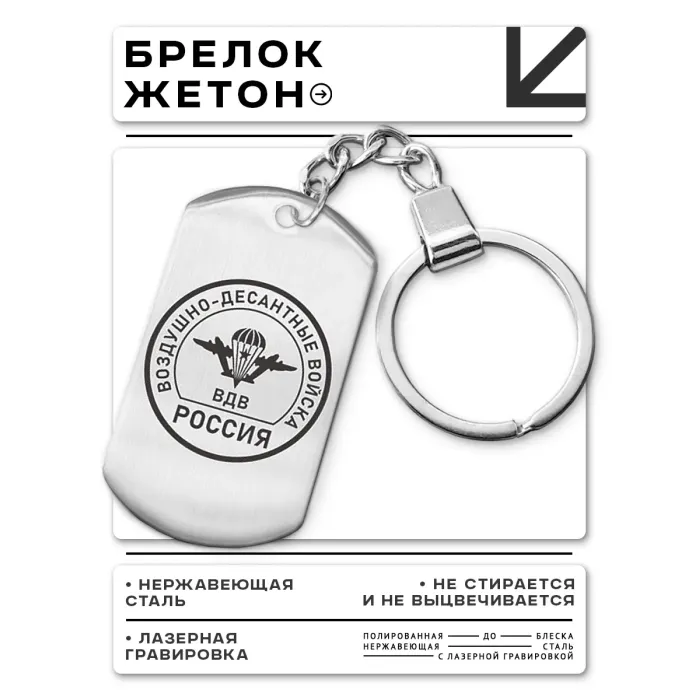 Брелок-жетон ВДВ из нержавеющей стали с односторонней лазерной гравировкой.