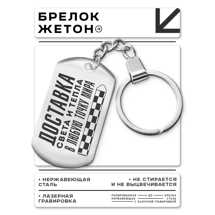 Брелок-жетон из нержавеющей стали с односторонней лазерной гравировкой.