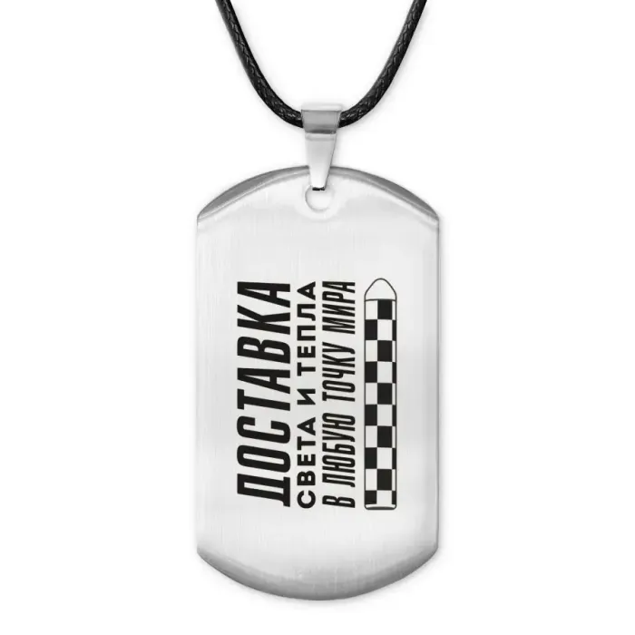 Амулет-жетон из нержавеющей стали с лазерной гравировкой на одной стороне.