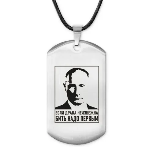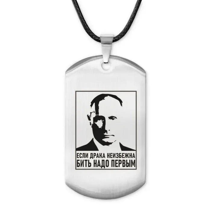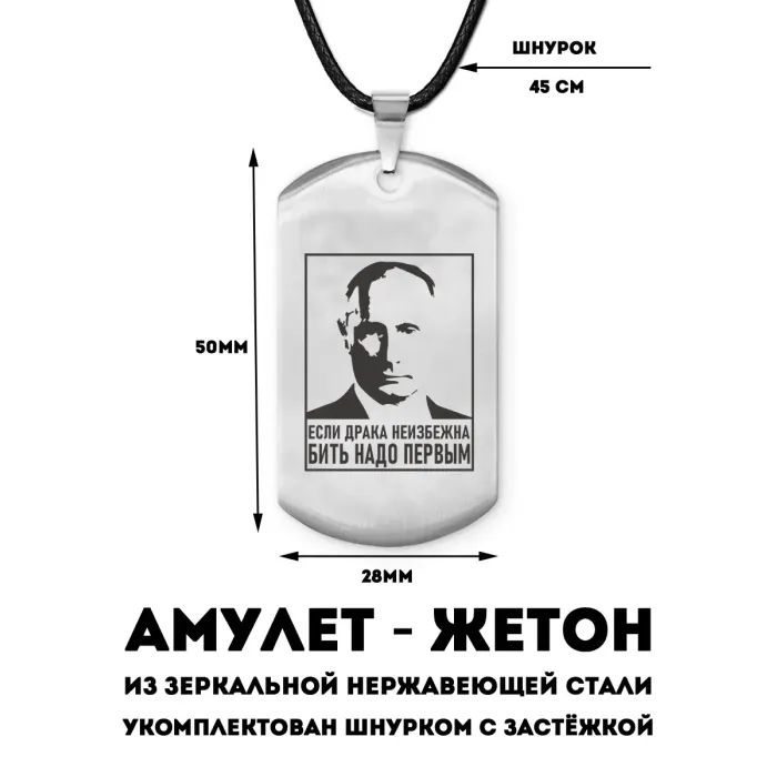 Амулет-жетон из нержавеющей стали с лазерной гравировкой на одной стороне.