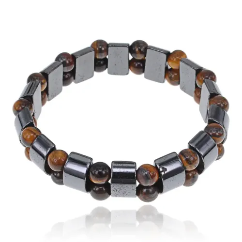 Стрейч-браслет с бусинами из магнитного гематита и тигрового глаза.