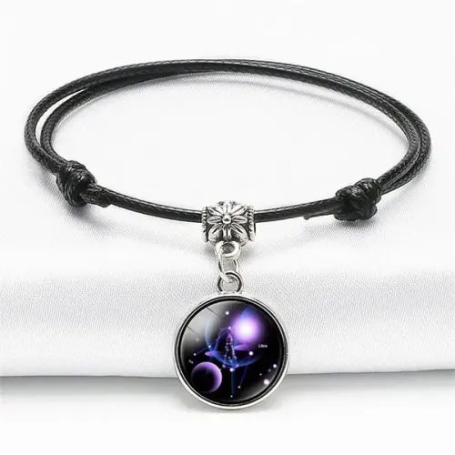 Браслет-амулет на вощёном шнурке — это стильный аксессуар, который сочетает в себе красоту и символику. Он изготовлен из прочного вощёного шнурка и украшен металлическим амулетом с покрытием под серебро, защищённым стеклом. Этот браслет не только дополняет образ, но и традиционно используется как оберег для владельца.