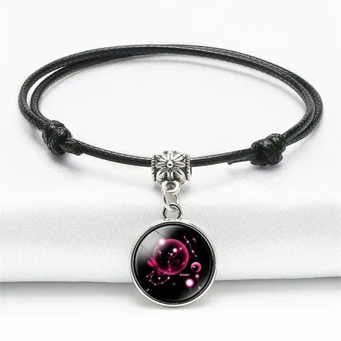 Браслет-амулет на вощёном шнурке — это стильный аксессуар, который сочетает в себе красоту и символику знаков зодиака. Он станет отличным подарком для тех, кто ценит астрологию и хочет подчеркнуть свою индивидуальность.