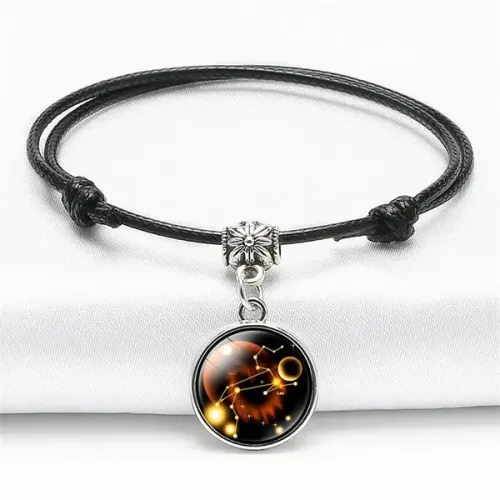 Браслет-амулет на вощёном шнурке — это стильный аксессуар с глубоким символическим значением. Он предназначен для тех, кто ценит астрологию и хочет подчеркнуть свою индивидуальность. Амулет из металла с покрытием под серебро защищён стеклом, что придаёт ему особую элегантность.