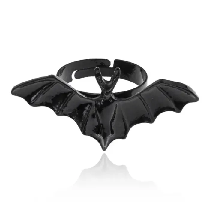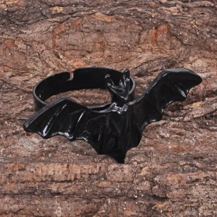 Безразмерное кольцо в виде летучей мыши из металла.