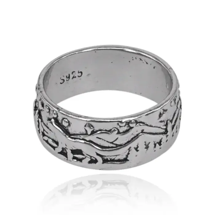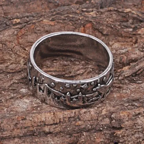 Кольцо «Волк, Горы и Лес» — сувенирный аксессуар из металла с рельефным природным дизайном.