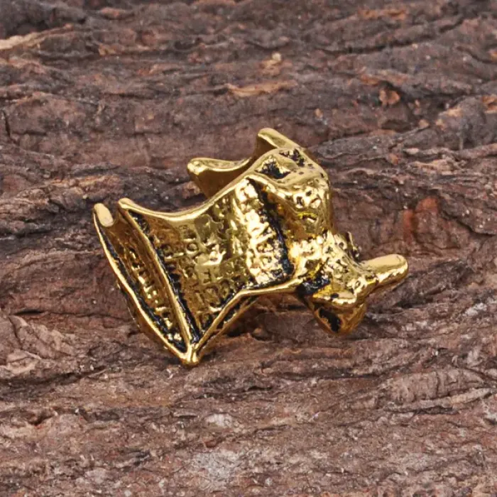 Безразмерное кольцо с дизайном летучей мыши из металла с золотым покрытием.