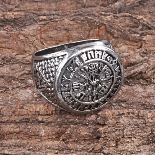 Кольцо Вегвизир — металлический сувенирный аксессуар с покрытием под серебро и символическим дизайном.