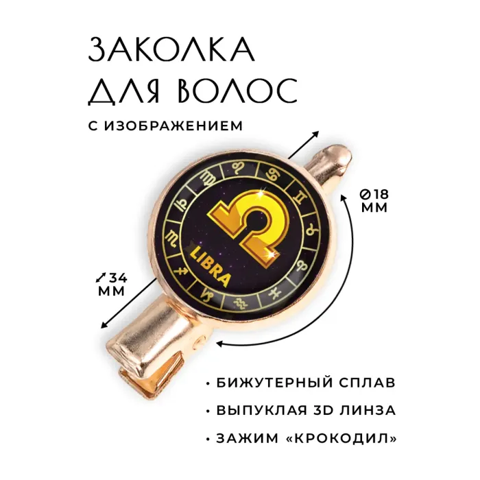 Заколка Знаки Зодиака - Весы станет стильным аксессуаром для любителей астрологии и символики. Этот изысканный предмет выполнен из бижутерного сплава с покрытием под розовое золото, что придаёт ему элегантный вид.