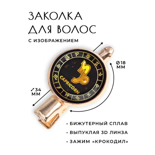 Заколка "Знаки Зодиака - Козерог" — это стильный аксессуар, который не только подчеркнёт индивидуальность, но и станет символом астрологического знака. Изготовленная из бижутерного сплава с покрытием под розовое золото, она привлекает внимание своим элегантным дизайном.