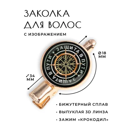 Размеры и комплектация: Размер заколки: 34х20х15 мм. Диаметр изображения: 18 мм. Упаковка: прозрачный пакет.