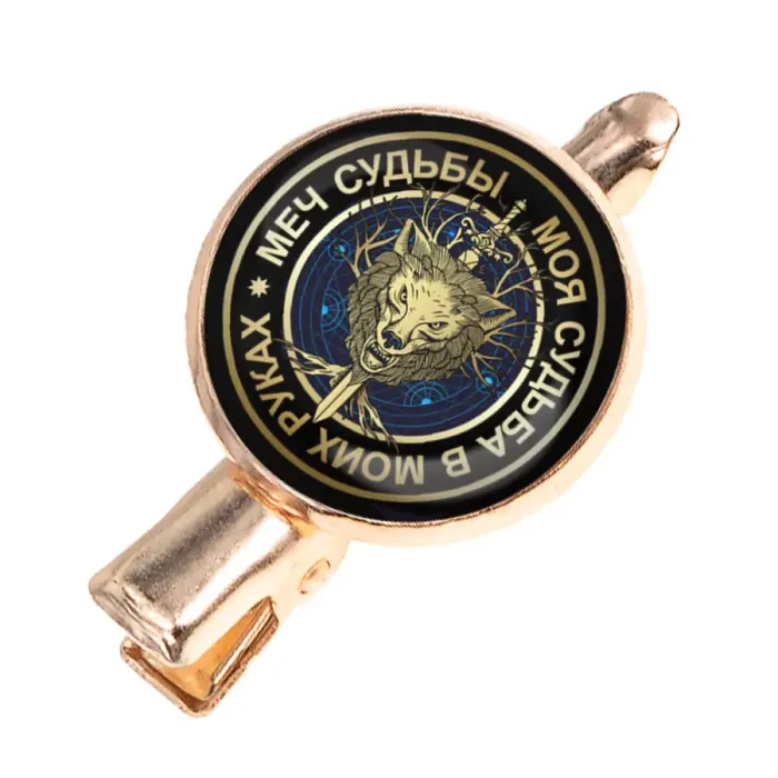 Размеры и комплектация: Размеры заколки: 34х20х15 см, диаметр изображения: 18 мм. Тип зажима: крокодил. Упаковка: прозрачный пакет.