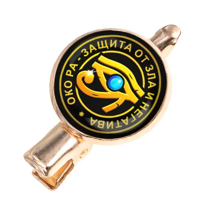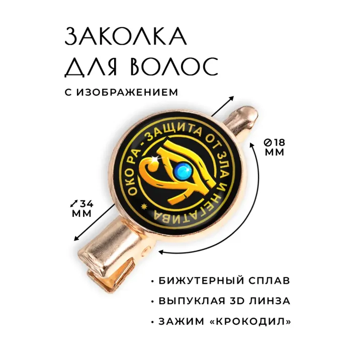 Заколка для волос из бижутерного сплава с покрытием под розовое золото и изображением символа Око Ра.