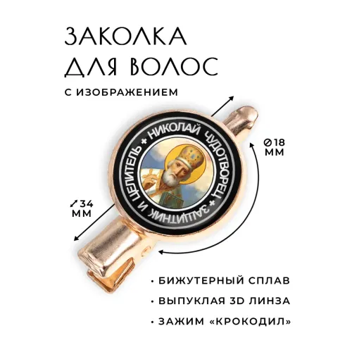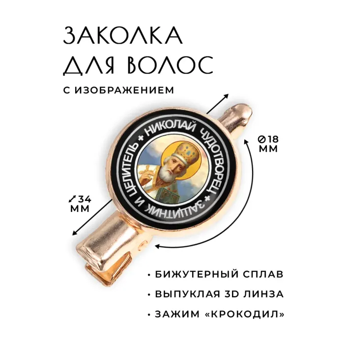 Заколка с изображением Святого Николая Чудотворца — это не только стильный аксессуар, но и символ благословения и защиты. Изготовленная из бижутерного сплава с покрытием под розовое золото, она станет прекрасным дополнением к любому образу. Основные особенности: