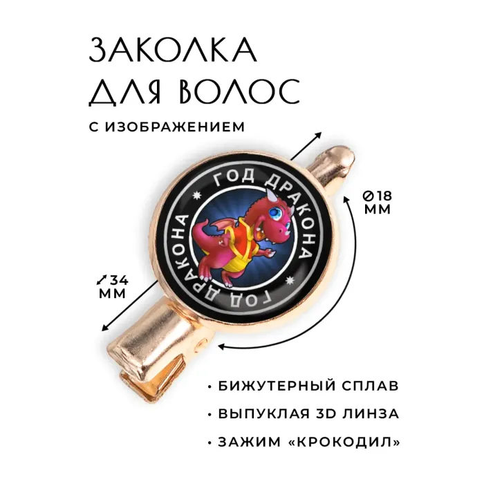 Заколка Восточный гороскоп - год Дракона является не только стильным аксессуаром, но и символом удачи и силы. Изготовленная из бижутерного сплава с покрытием под розовое золото, она станет ярким дополнением любого образа.