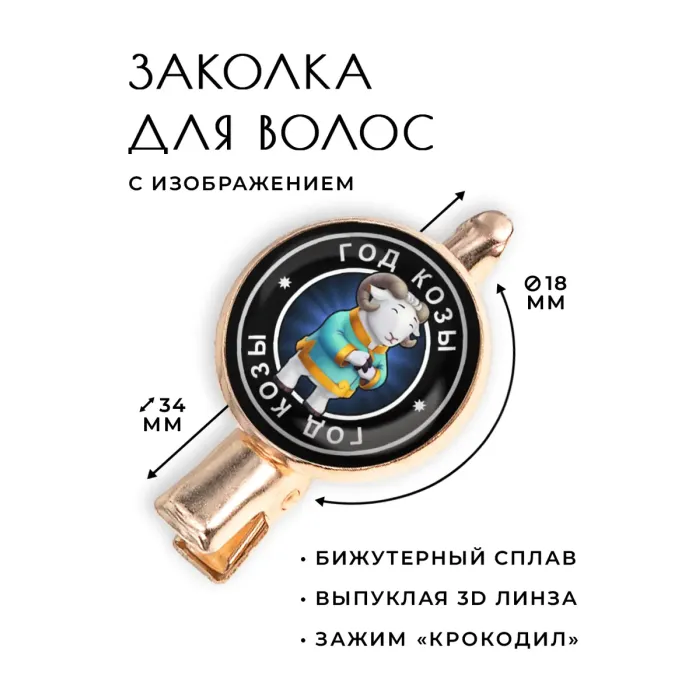 Заколка Восточный гороскоп — это стильный аксессуар, который сочетает в себе символику восточного календаря и элегантный дизайн. Она станет прекрасным подарком для тех, кто родился в год Козы, а также добавит изюминку в любой образ.