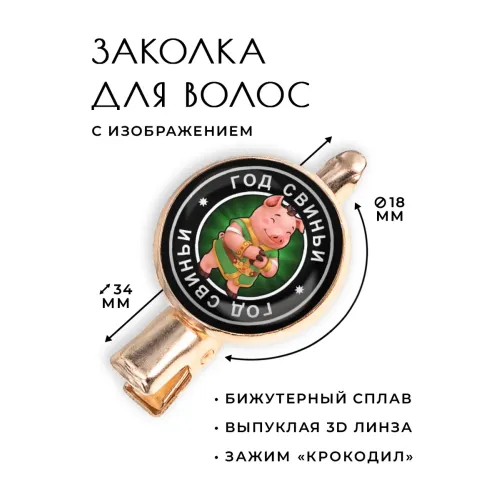 Заколка Восточный гороскоп - год Свиньи является стильным аксессуаром, который сочетает в себе красоту и символику. Этот товар изготавливается из бижутерного сплава с покрытием под розовое золото, что придаёт ему элегантный вид. Тип зажима — крокодил, обеспечивающий надежное крепление на волосах.