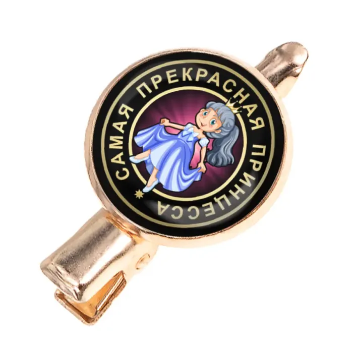 Заколка "Самая прекрасная принцесса" — это не просто аксессуар, а символ утонченной красоты и элегантности. Изготовленная из бижутерного сплава с покрытием под розовое золото, она станет идеальным дополнением к любому образу.