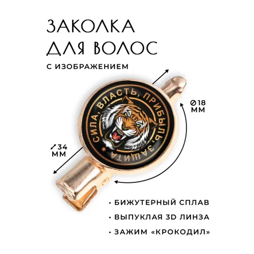 Размеры и комплектация: Размер заколки: 34х20х15 мм, диаметр изображения: 18 мм. Упаковка: прозрачный пакет.