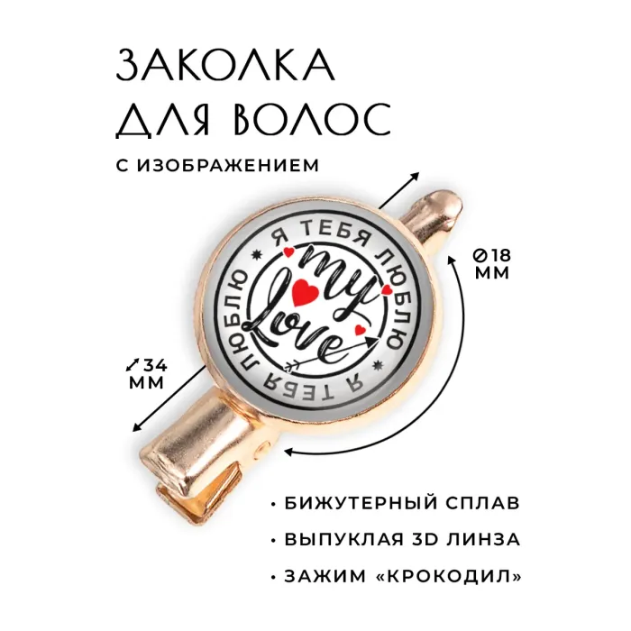 Эта заколка станет прекрасным символом любви и заботы, идеально подходящим для создания романтического образа. Изготовленная из бижутерного сплава с покрытием под розовое золото, она сочетает в себе элегантность и стиль. Основные характеристики: