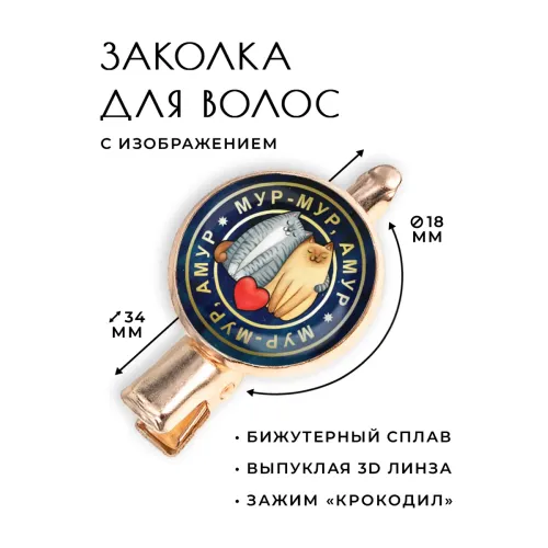 Заколка Мур-мур — это стильный аксессуар, который добавляет изысканности любому образу. Изготовленная из бижутерного сплава с покрытием под розовое золото, она сочетает в себе прочность и элегантность. Крокодиловидный зажим обеспечивает надежное удержание волос, а размер заколки 34х20х15 см делает её удобной для повседневного использования.