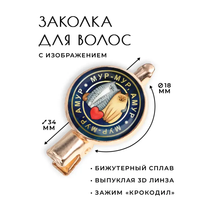 - Диаметр изображения составляет 18 мм, что придаёт заколке выразительность.