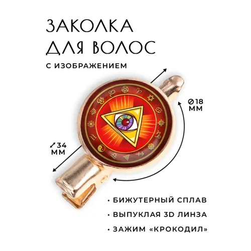 Заколка для волос из бижутерного сплава с дизайном в виде глаза под стеклянной линзой.
