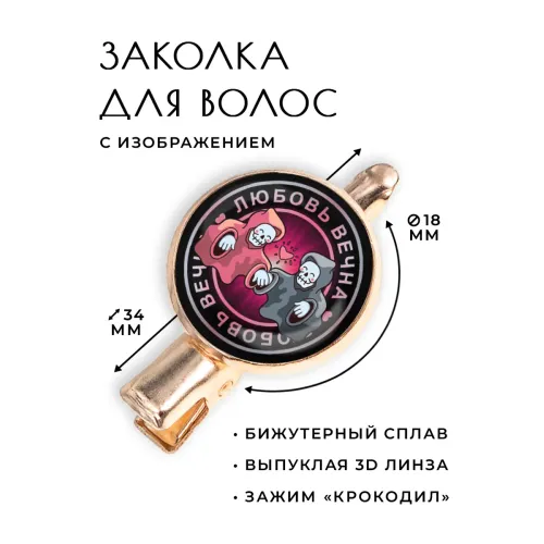 Заколка "Любовь вечна" — это изысканный аксессуар, который станет прекрасным дополнением к любому образу. Изготовленная из бижутерного сплава с покрытием под розовое золото, она сочетает в себе элегантность и стиль. Основные особенности:
