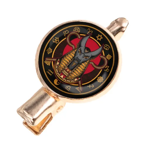 Заколка для волос в виде головы Анубиса из бижутерного сплава с покрытием под розовое золото.