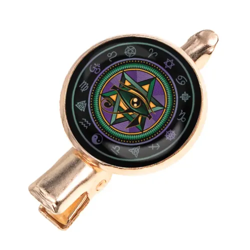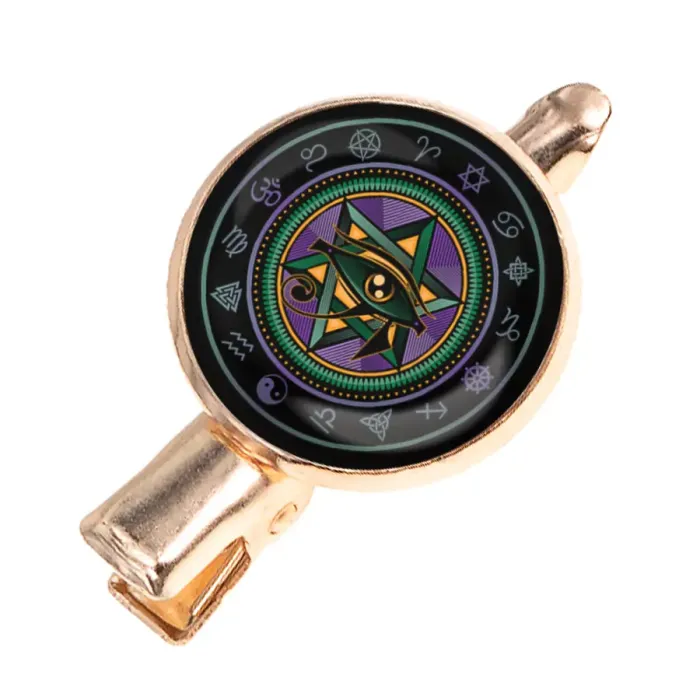 Заколка для волос с изображением Ока Гора, изготовленная из бижутерного сплава с покрытием под розовое золото.