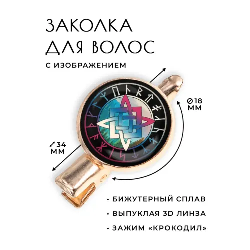 Размеры и комплектация: Размер заколки 34х20х15 мм. Тип зажима — крокодил. Упаковка — прозрачный пакет.