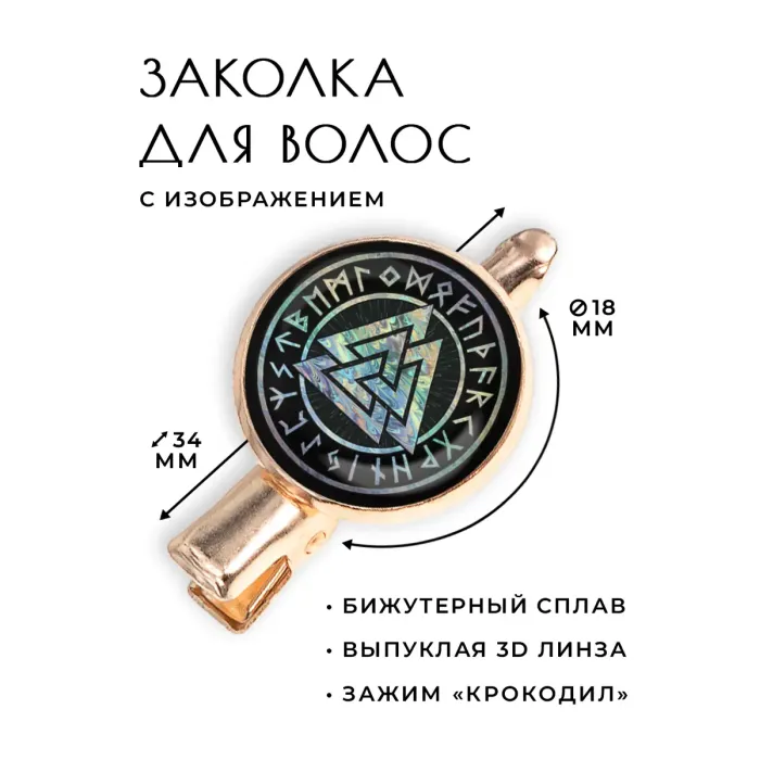 Заколка для волос из бижутерного сплава с символом Валькнут.