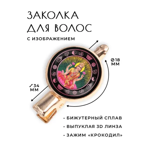 Размеры и комплектация: Размер заколки: 34х20х15 мм. Диаметр изображения: 18 мм. Упаковка: прозрачный пакет.