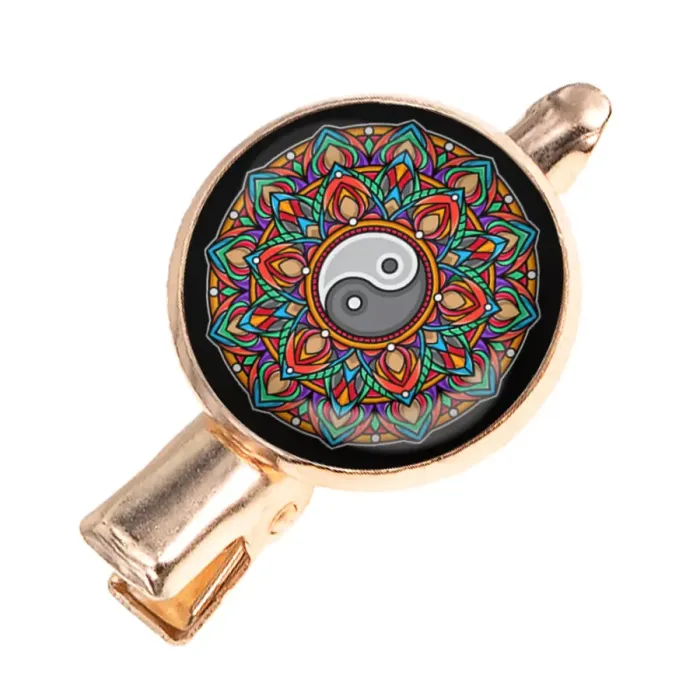 Заколка для волос из бижутерного сплава с дизайном в виде мандалы и символа инь-ян.
