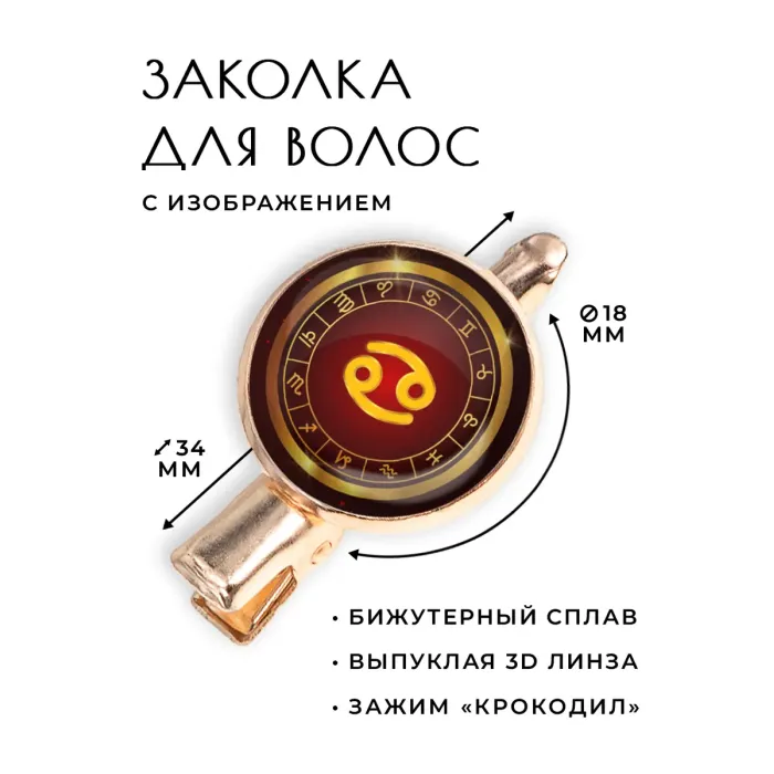 Заколка "Знаки Зодиака - Рак" — это стильный аксессуар, который подчеркнёт индивидуальность и добавит изюминку в любой образ. Изготовленная из бижутерного сплава с покрытием под розовое золото, она сочетает в себе элегантность и прочность. Основные особенности: