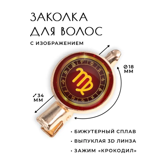 Заколка Знаки Зодиака - Дева представляет собой стильный аксессуар, который не только подчеркнёт индивидуальность, но и станет символом астрологического знака. Изготовленная из бижутерного сплава с элегантным покрытием под розовое золото, она привлекает внимание своим утонченным дизайном.