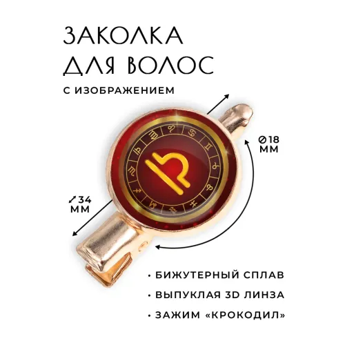 Заколка 'Знаки Зодиака - Весы' — это стильный аксессуар, который сочетает в себе элегантность и символику. Изготовленная из бижутерного сплава с покрытием под розовое золото, она станет прекрасным дополнением к любому образу. Основные характеристики: тип зажима — крокодил, размер заколки составляет 34х20х15 см, а диаметр изображения — 18 мм. Изображение защищено выпуклой стеклянной линзой, что придаёт ему особую выразительность. Упакована в прозрачный пакет для удобства хранения и подарков.