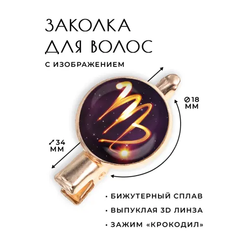 Заколка 'Знаки Зодиака - Дева' — это стильный аксессуар, который не только подчеркнет индивидуальность, но и станет символом астрологического знака. Изготовленная из бижутерного сплава с покрытием под розовое золото, она привносит нотку элегантности в любой образ.