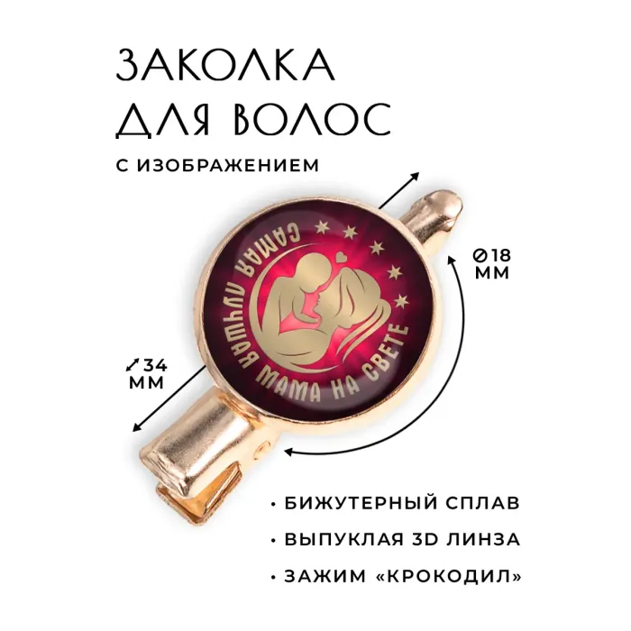 Заколка «Самая лучшая мама на свете» — это не просто аксессуар, а символ любви и заботы. Она идеально подходит для подарка маме, подчеркивая её уникальность и важность в жизни. Изготовлена из бижутерного сплава с элегантным покрытием под розовое золото, заколка выглядит стильно и современно.