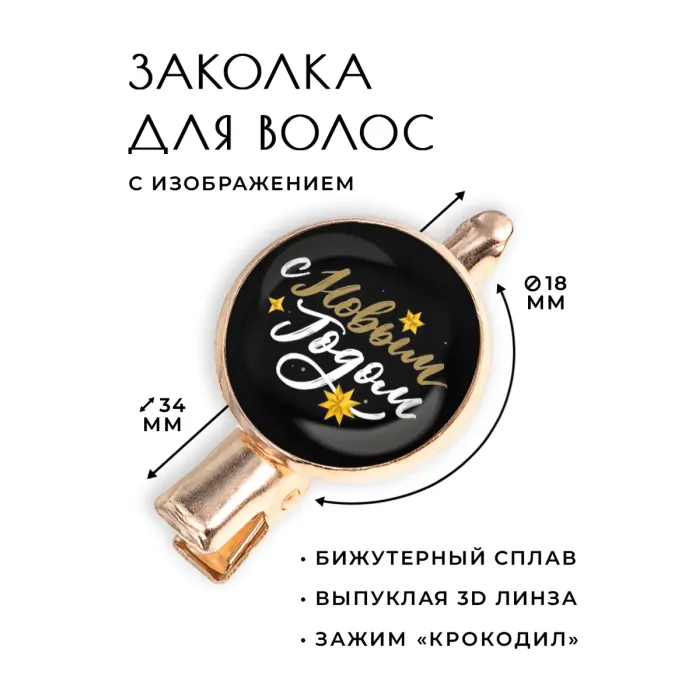 Заколка «С Новым годом» — это стильный аксессуар, который добавит праздничного настроения в любой образ. Изготовленная из бижутерного сплава с покрытием под розовое золото, она сочетает в себе элегантность и оригинальность. Основные особенности: