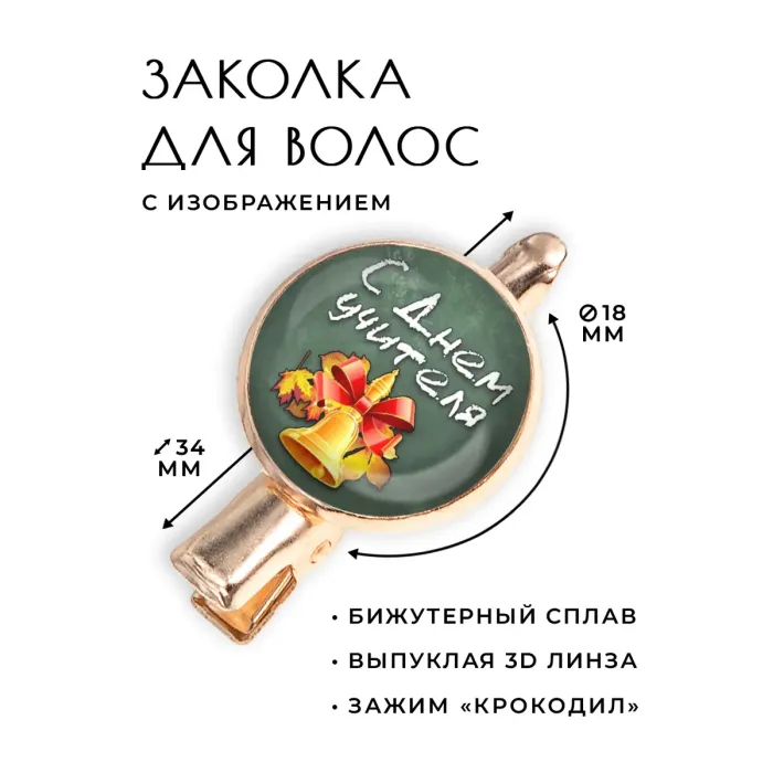Заколка С Днём Учителя — это стильный аксессуар, который станет прекрасным подарком для учителей. Изготовленная из бижутерного сплава с покрытием под розовое золото, она сочетает в себе элегантность и практичность. Основные особенности: