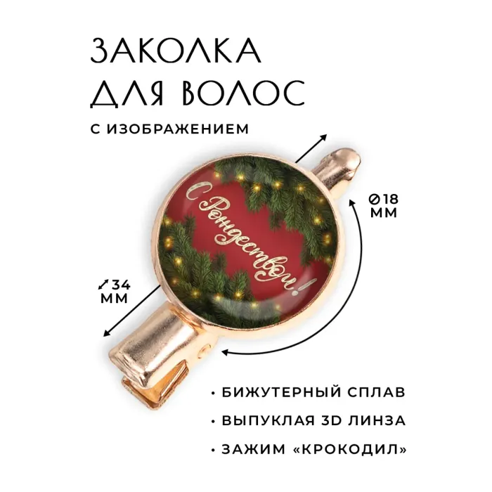 Заколка «С Рождеством!» — это стильный аксессуар, который станет прекрасным дополнением к праздничному образу. Изготовленная из бижутерного сплава с покрытием под розовое золото, она сочетает в себе элегантность и оригинальность. Основные особенности: