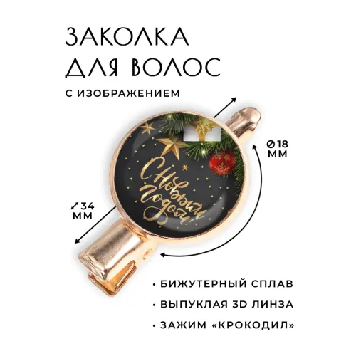 Заколка «С Новым годом» — это стильный аксессуар, который станет прекрасным дополнением к новогоднему образу. Изготовленная из бижутерного сплава с покрытием под розовое золото, она сочетает в себе элегантность и праздничное настроение. Основные особенности: