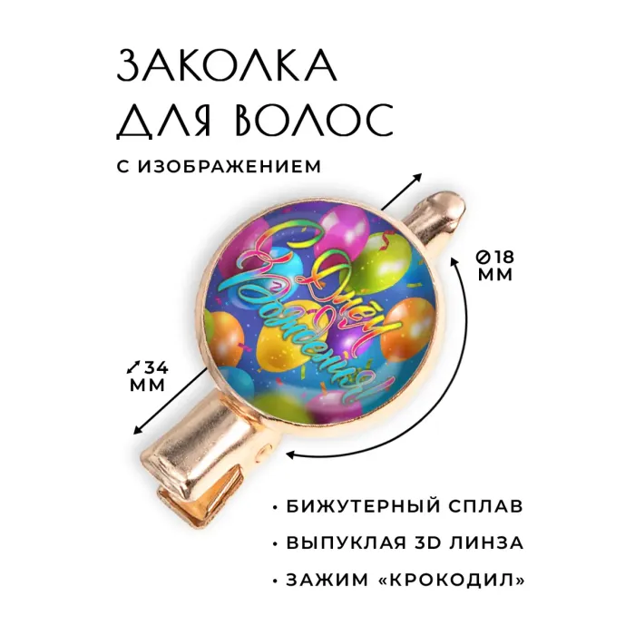 Заколка «С Днём рождения!» — это стильный аксессуар, который станет прекрасным дополнением к любому праздничному наряду. Изготовленная из бижутерного сплава с элегантным покрытием под розовое золото, она привнесет нотку торжественности в любой момент. Основные характеристики включают: