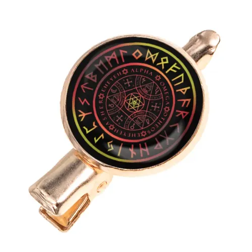 Заколка для волос из бижутерного сплава с покрытием под розовое золото и декоративным элементом под стеклянной линзой.