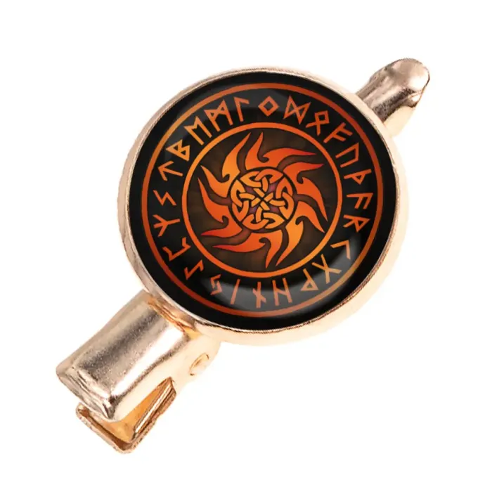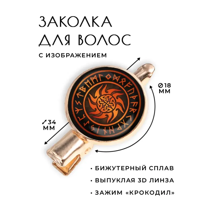 Заколка для волос из бижутерного сплава с покрытием под розовое золото и декоративным элементом Коловрат.