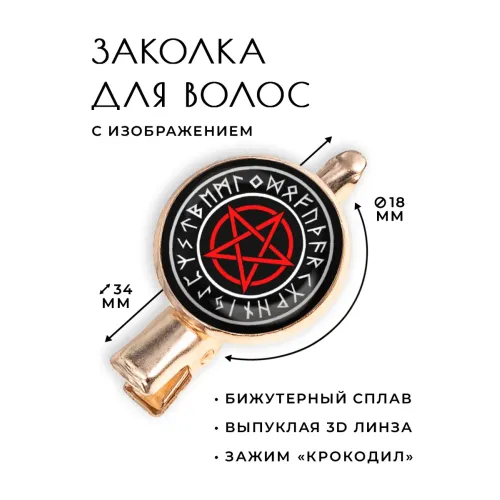 Заколка для волос в виде пентаграммы из бижутерного сплава с покрытием под розовое золото и защитным стеклянным элементом.