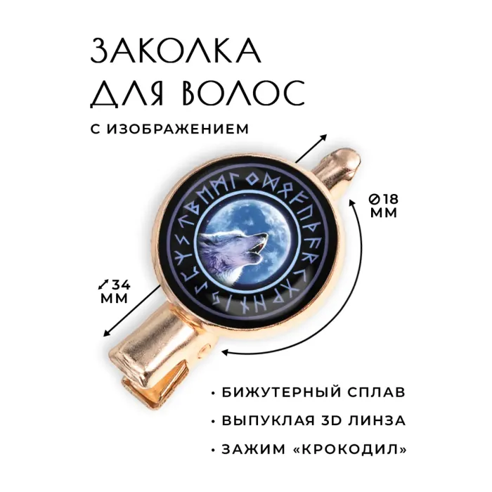Размеры и комплектация: Размер заколки 34х20х15 мм, диаметр линзы 18 мм. Упаковка — прозрачный пакет.
